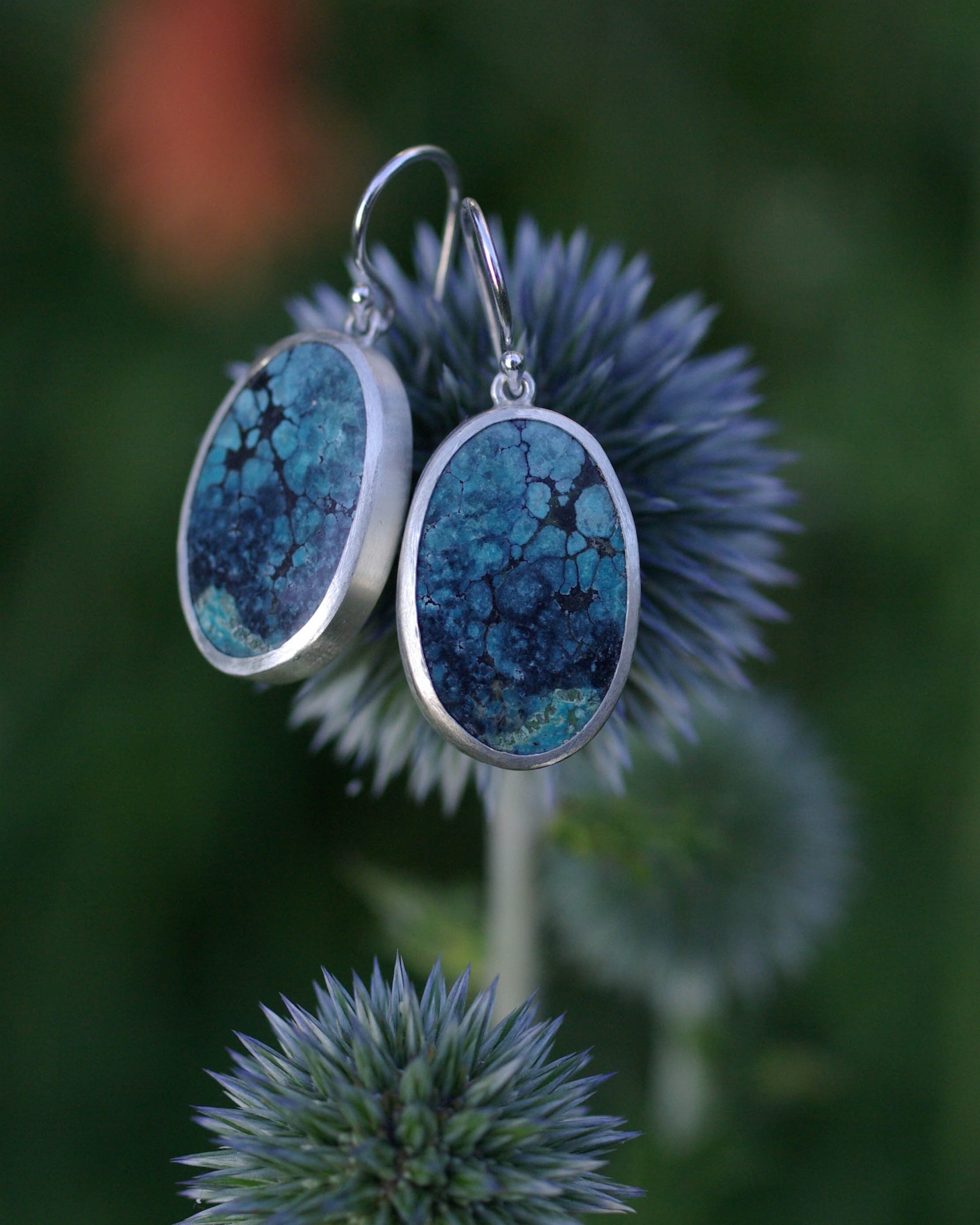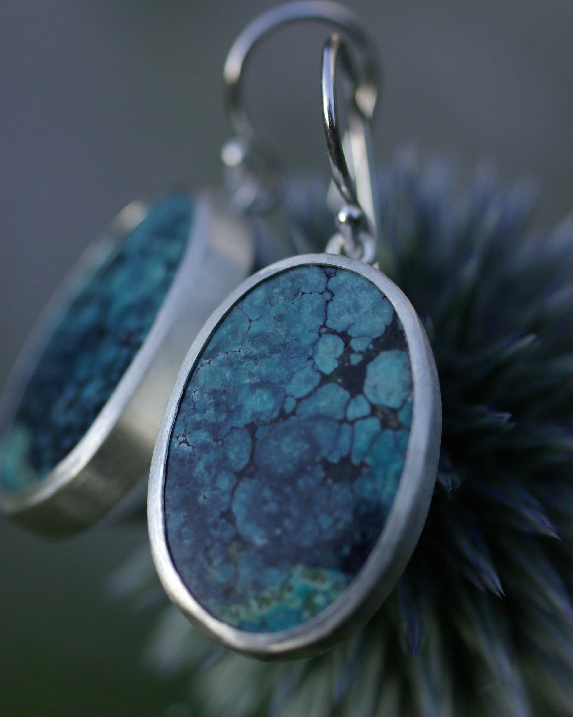 Boucles d’oreilles Turquoise Spiderweb Ovale – Argent 925