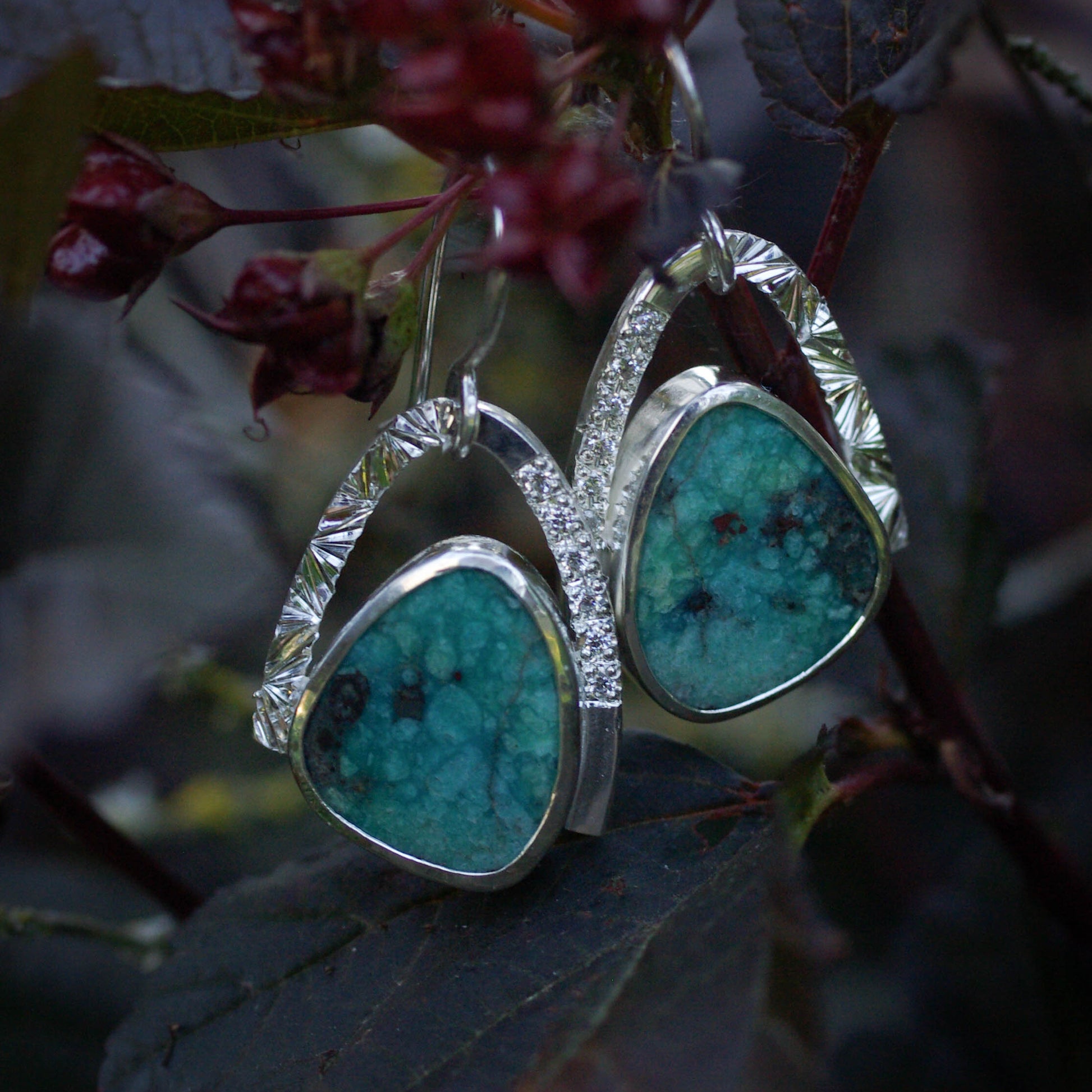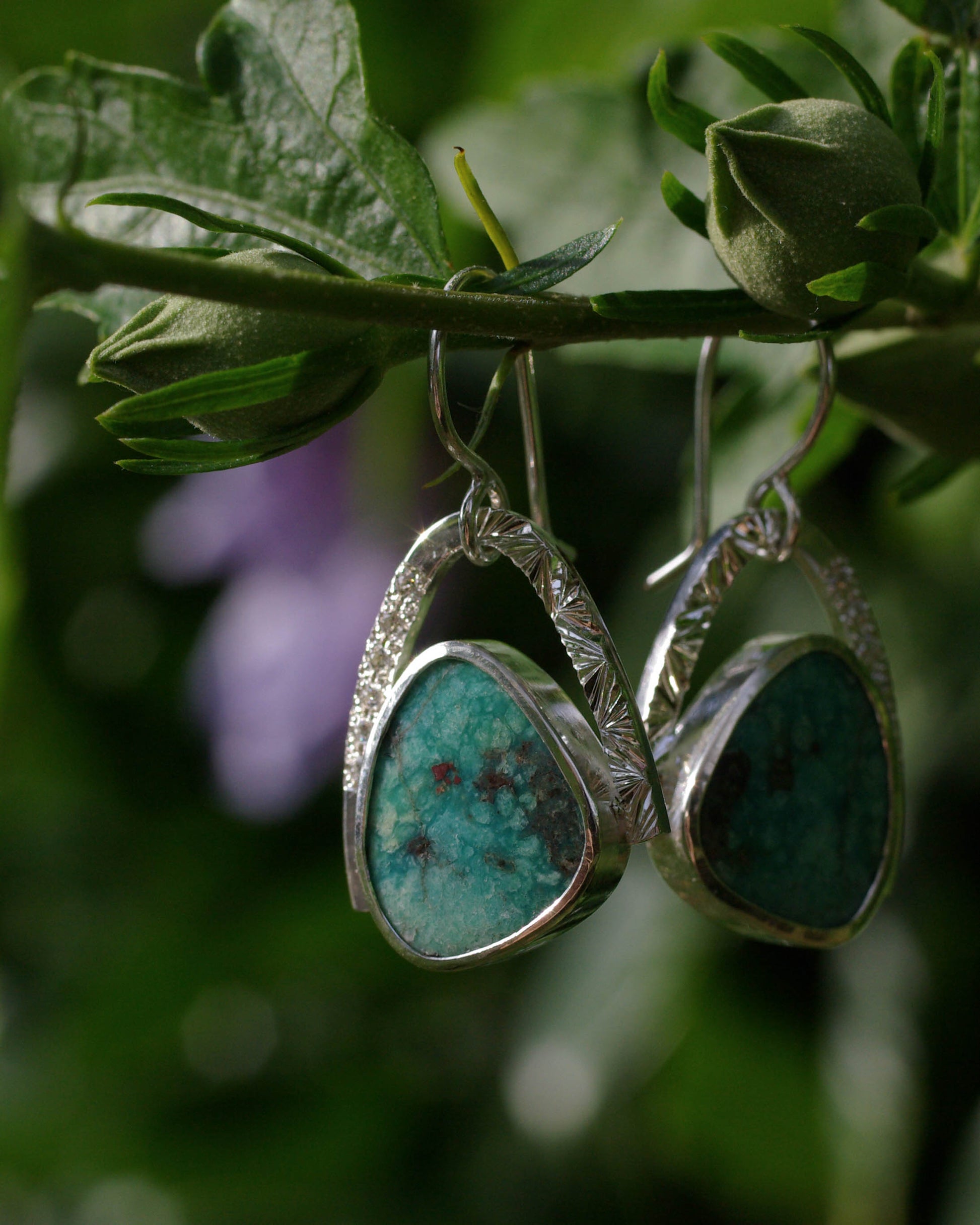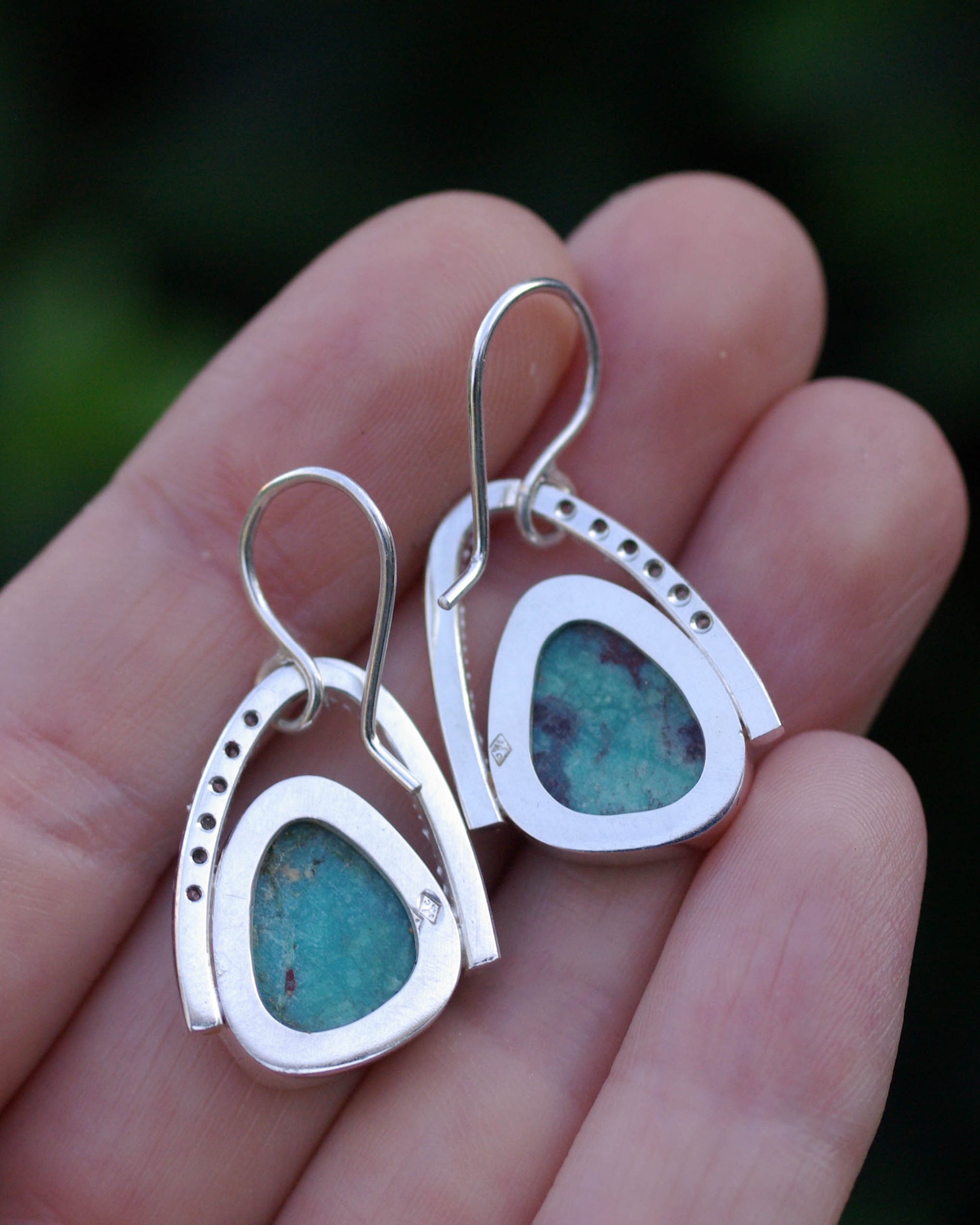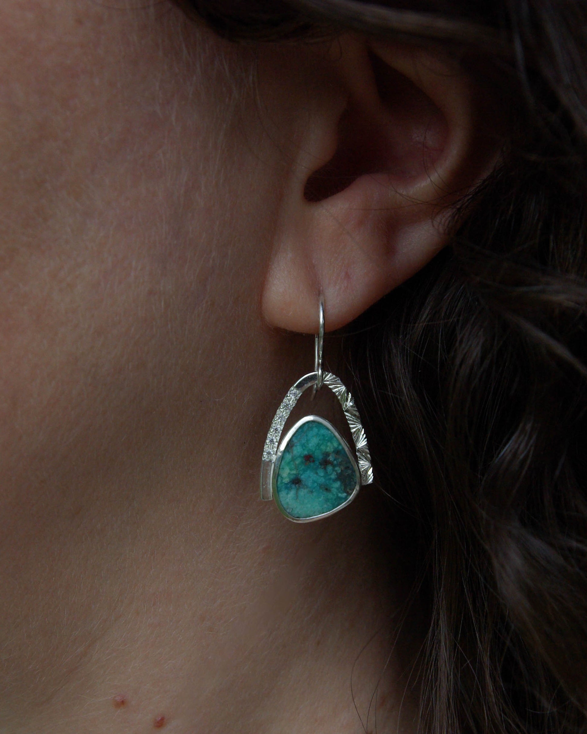 Boucles d’oreilles Turquoise Triangulaire – Argent 925, zirconiums et gravure