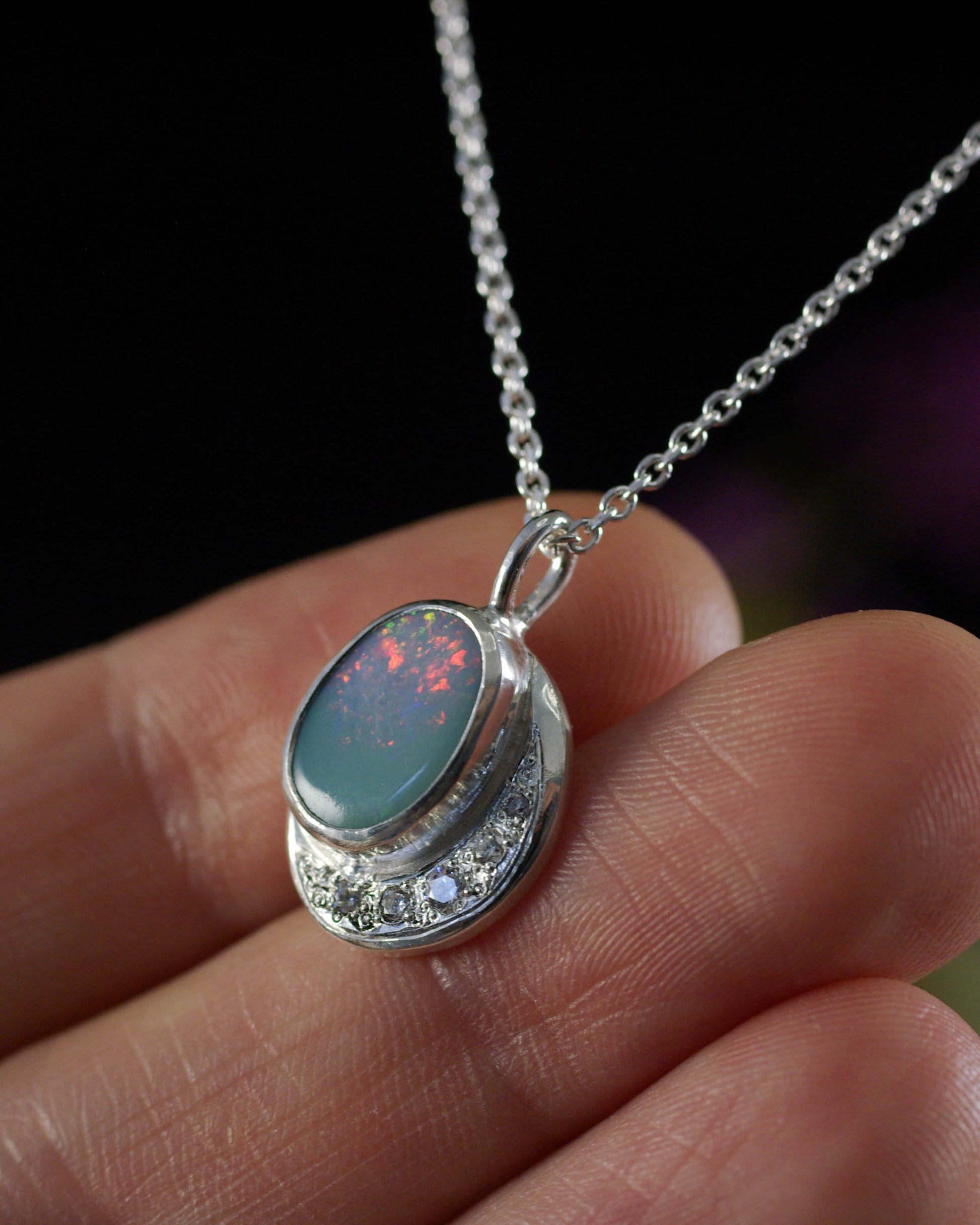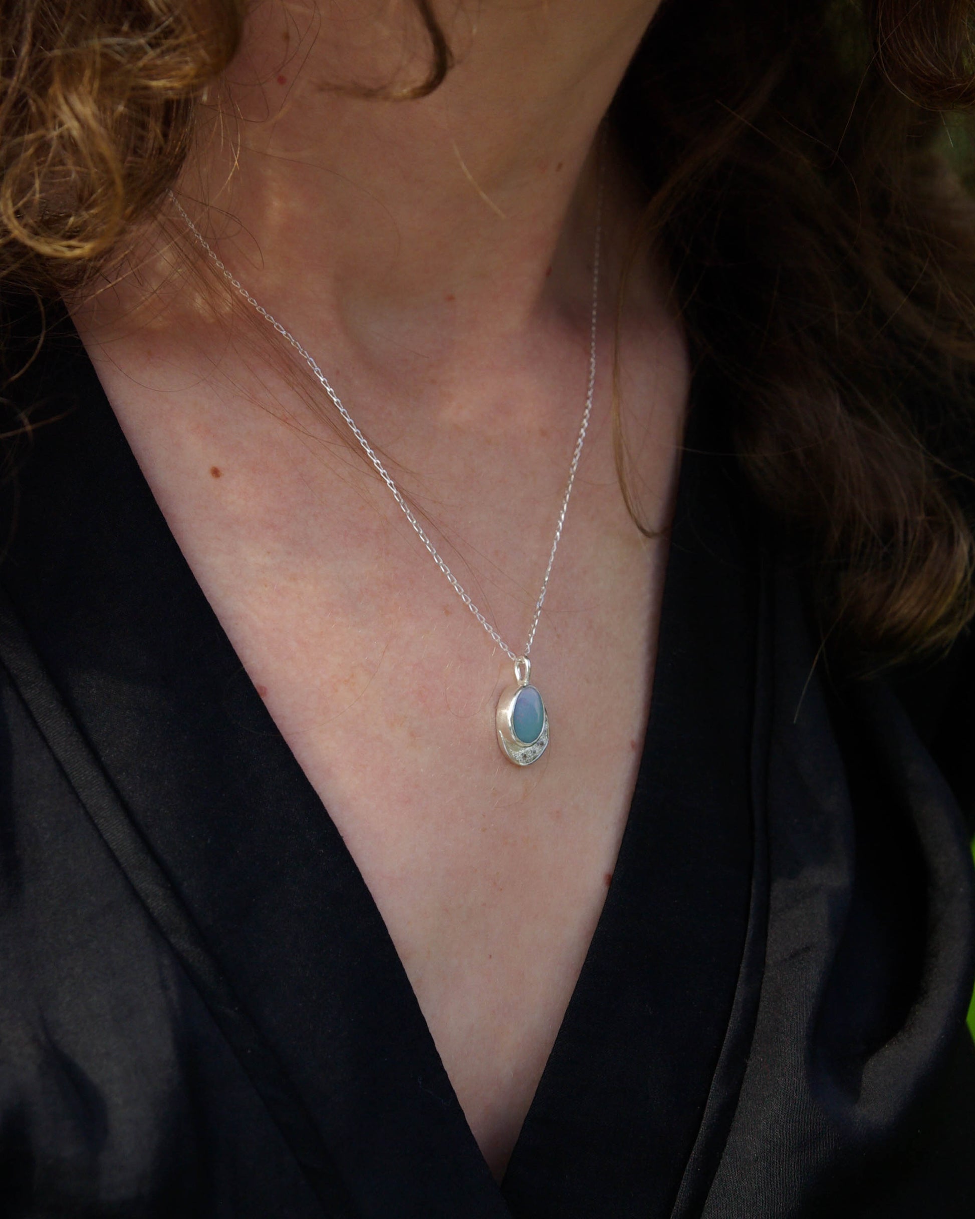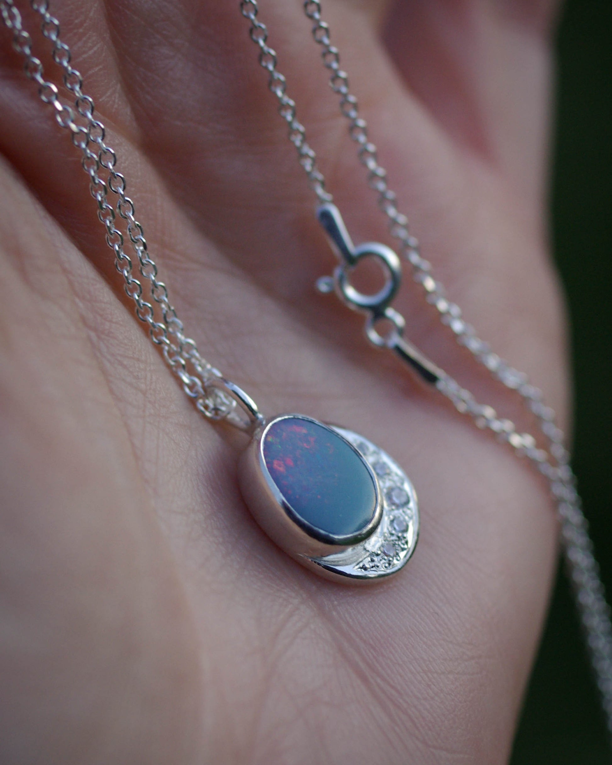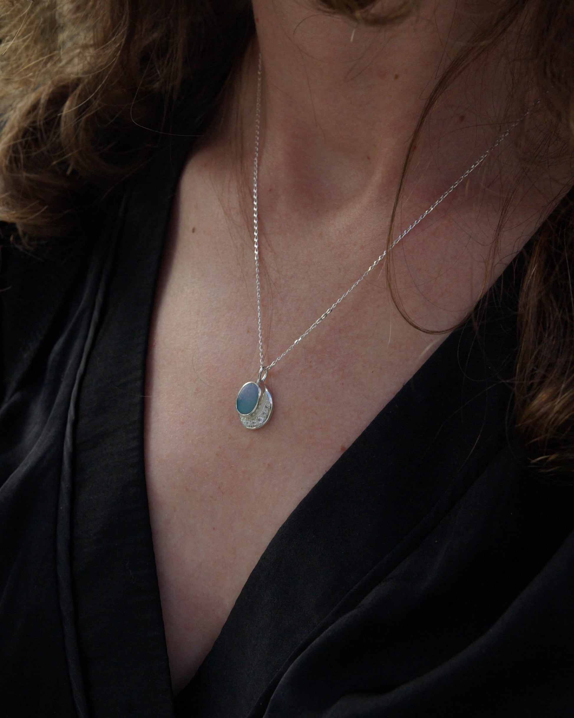 Pendentif Argent 925 Opale Bleu-Gris Zirconiums – Luminescences