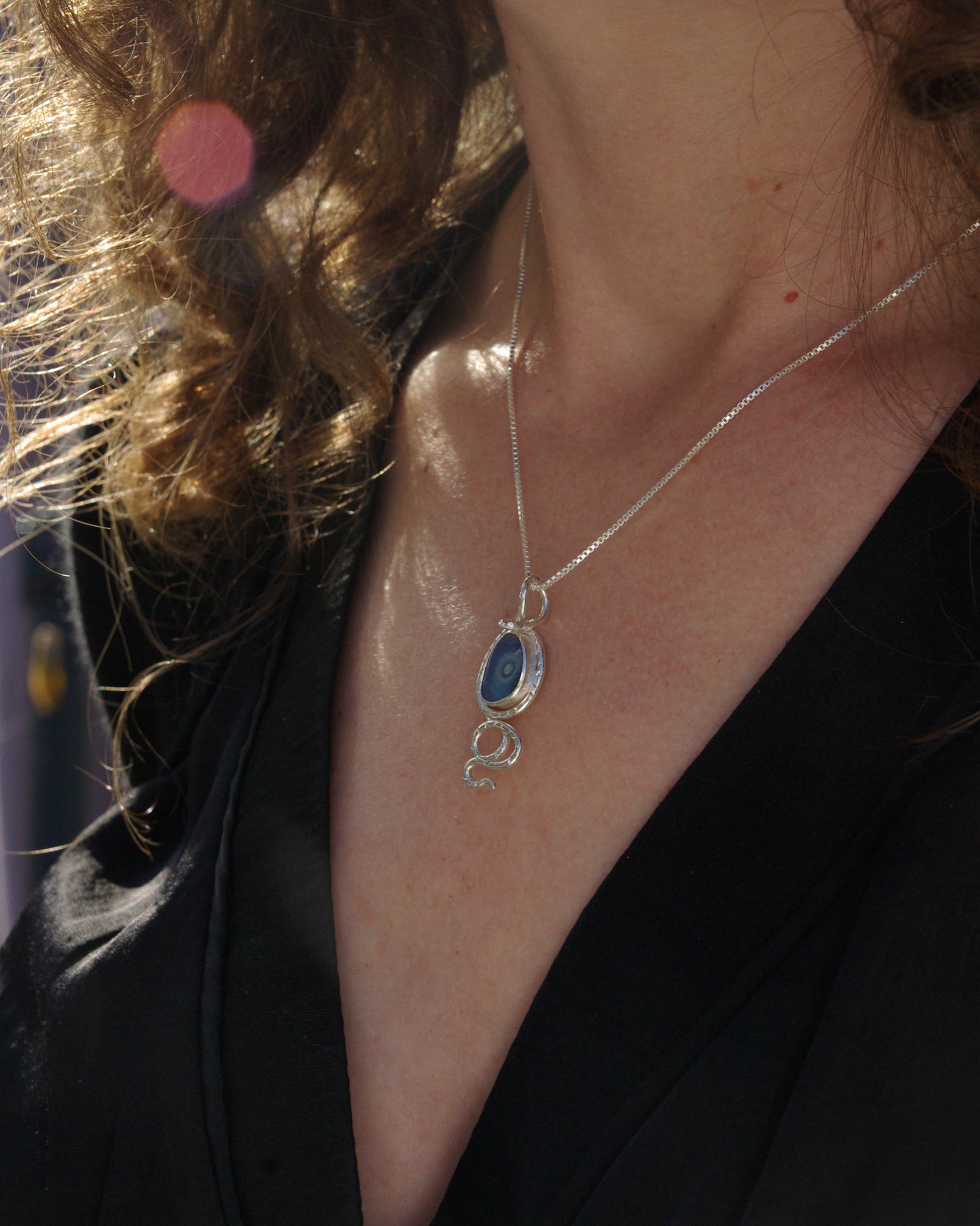 Pendentif Argent 925 Opale Galaxie avec Serpent – Luminescences