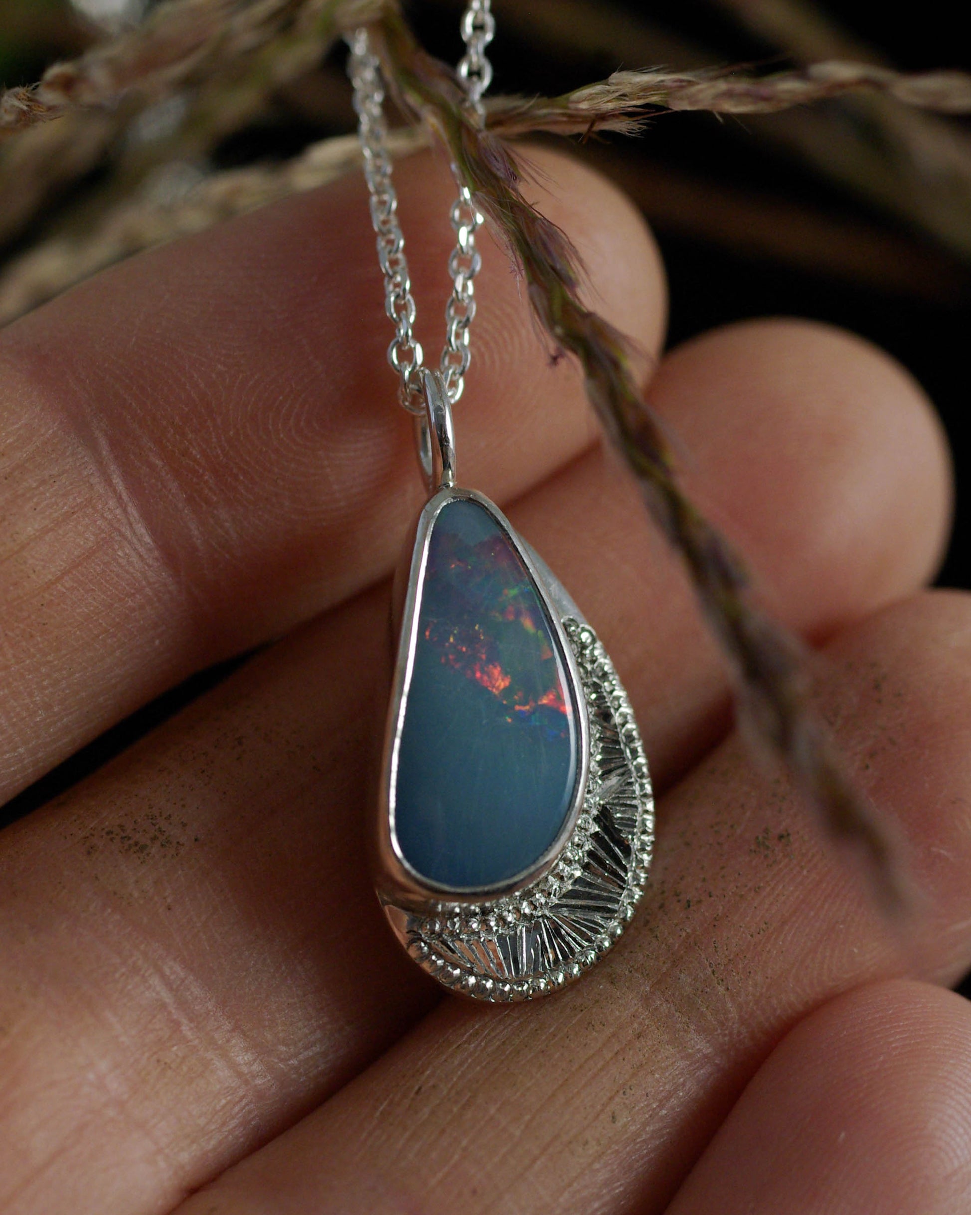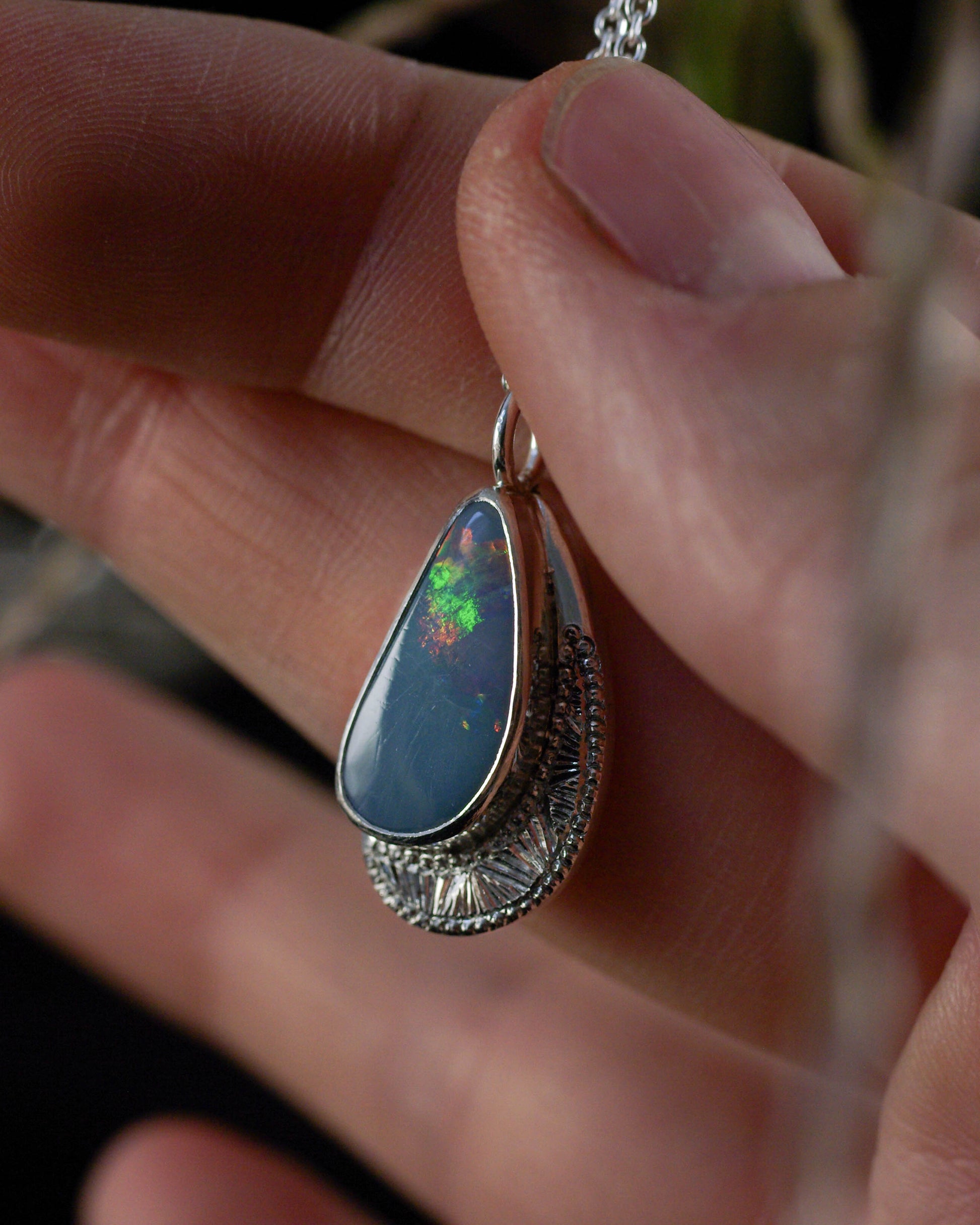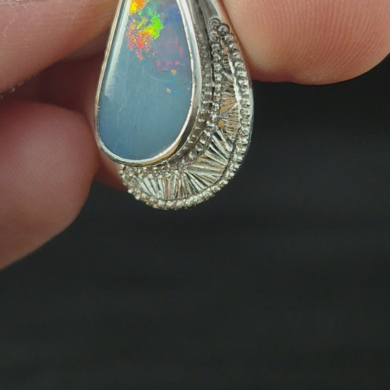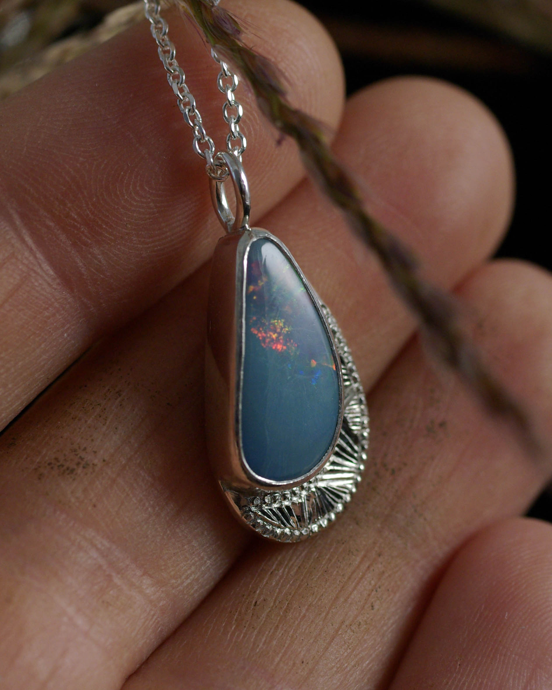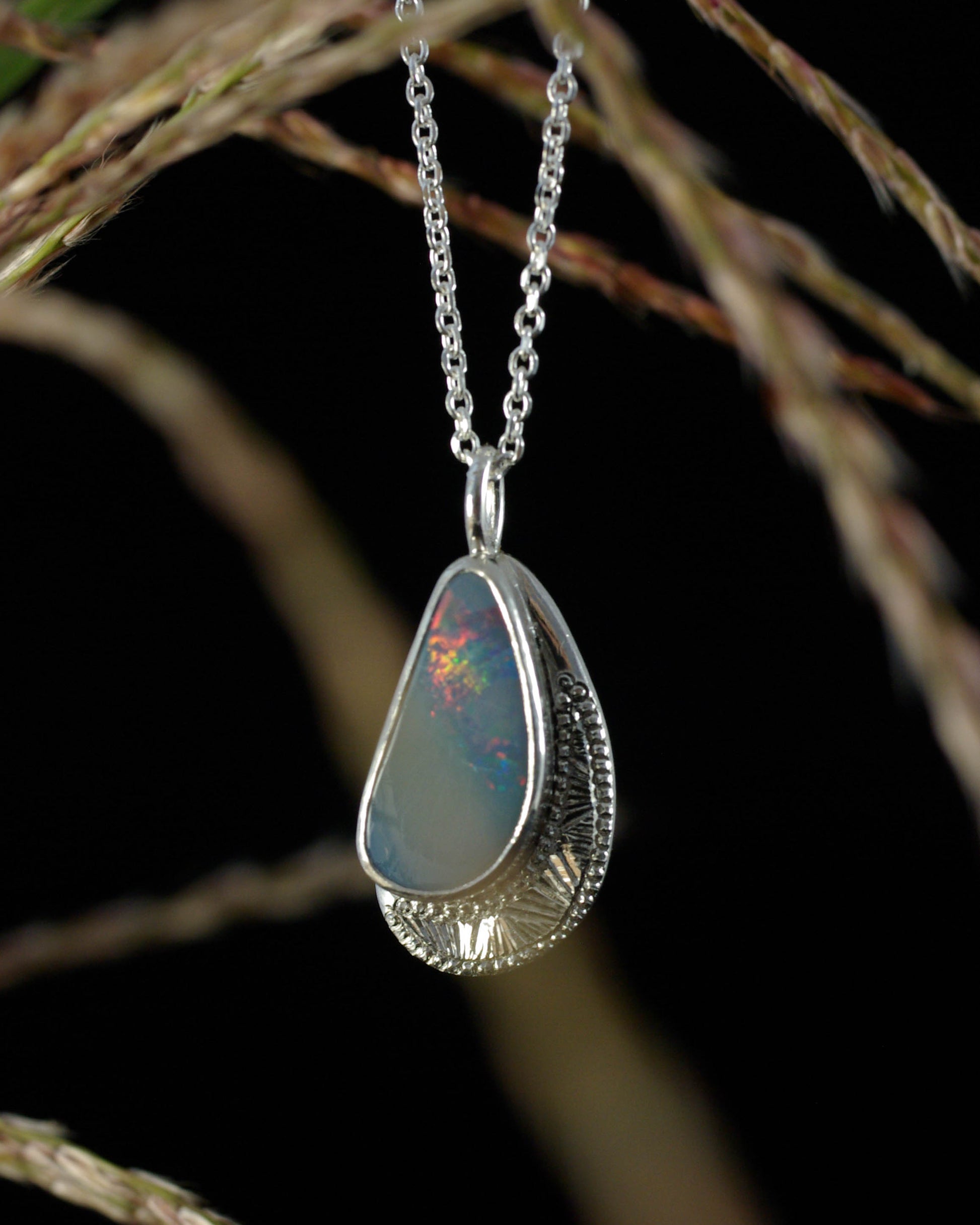 Pendentif Argent 925 Opale Multicolore Gravé – Luminescences