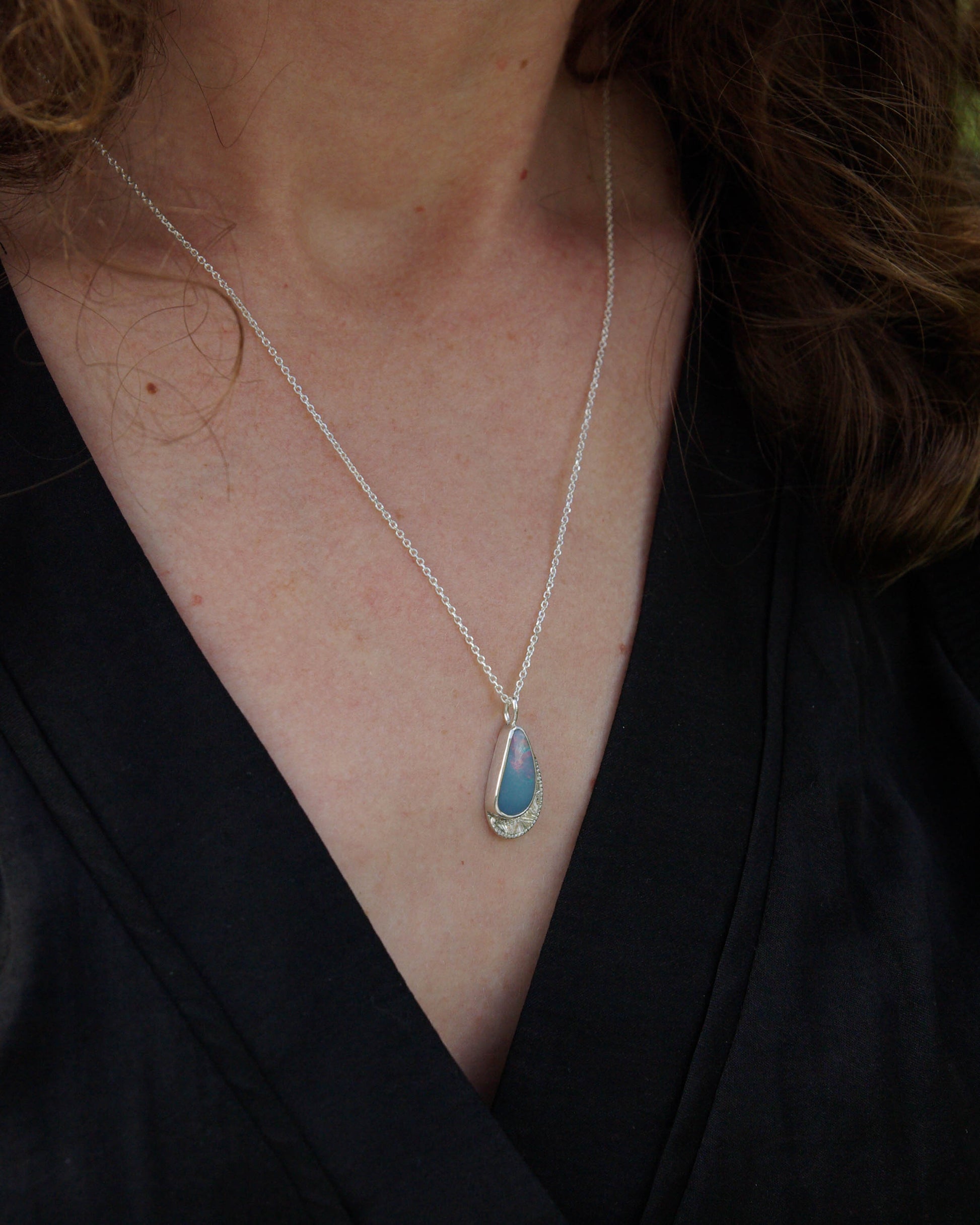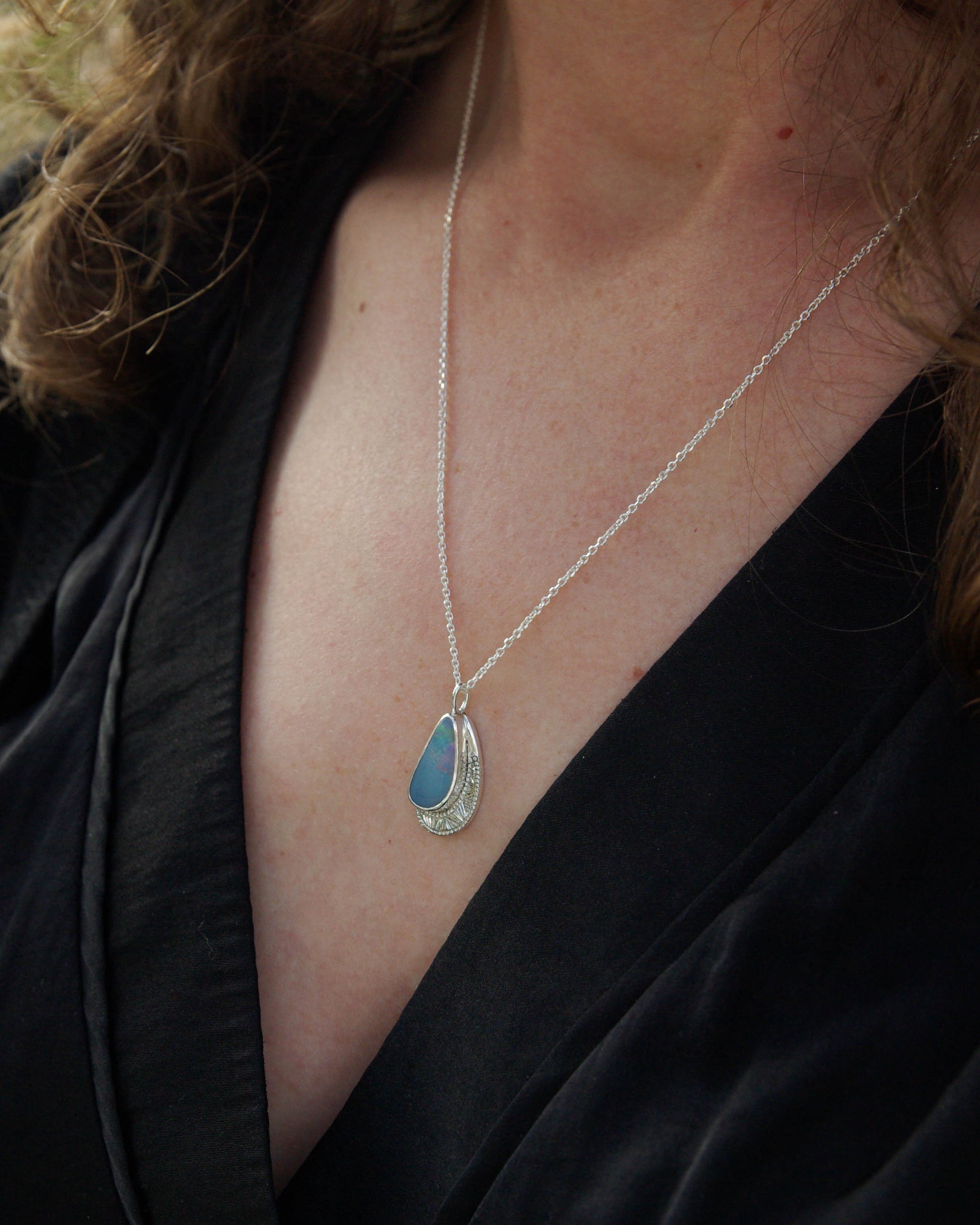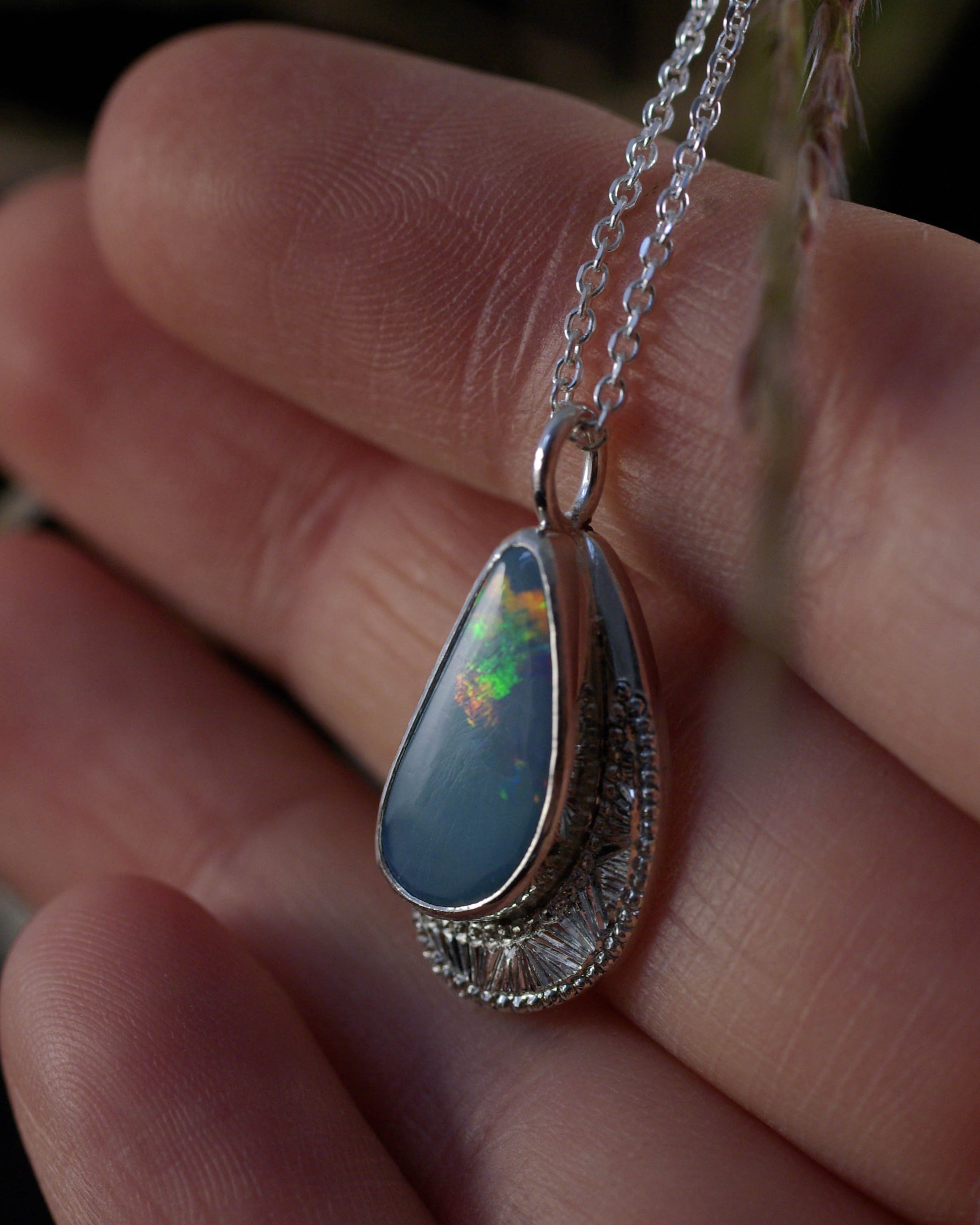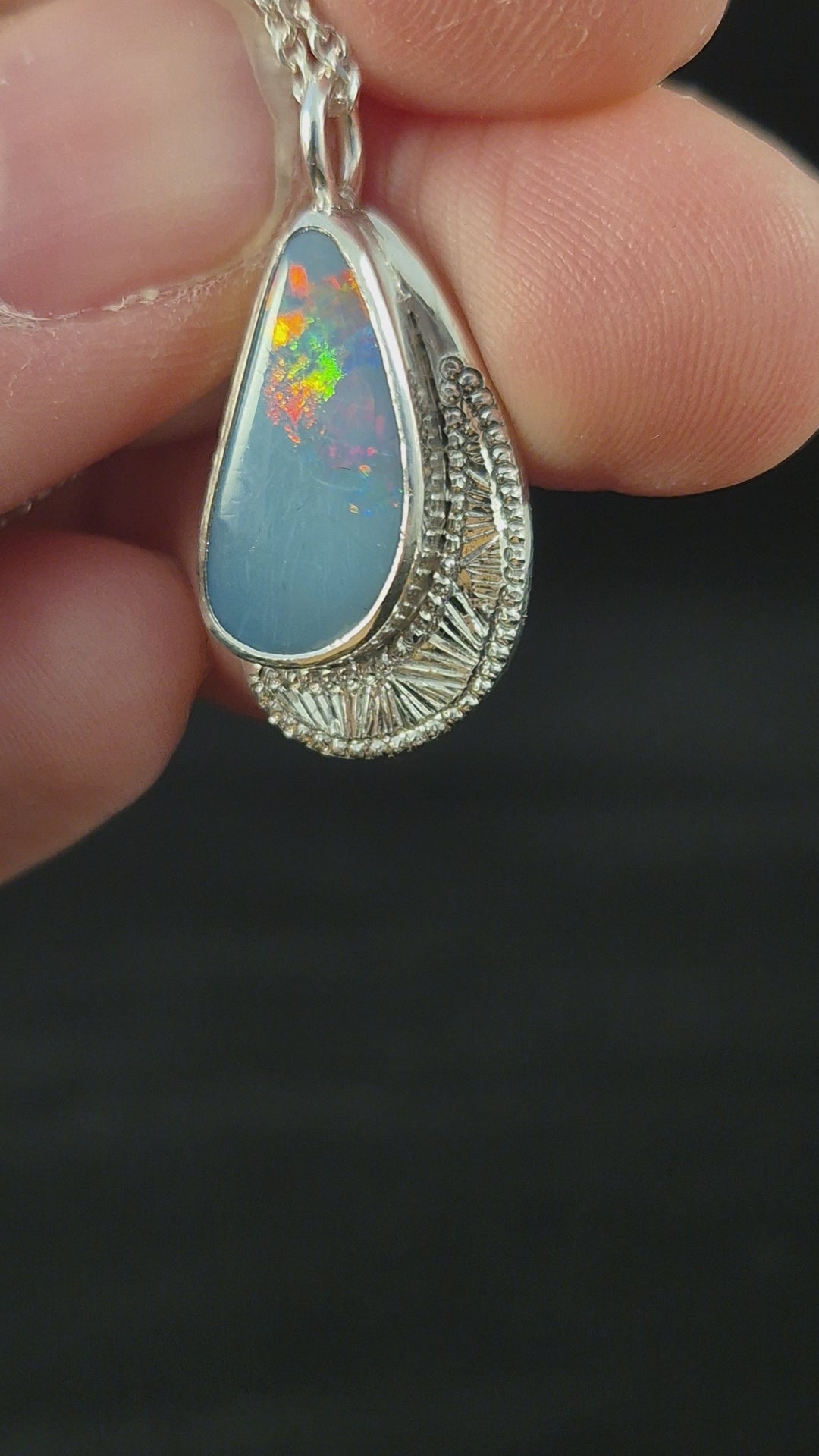 Pendentif Argent 925 Opale Multicolore Gravé – Luminescences